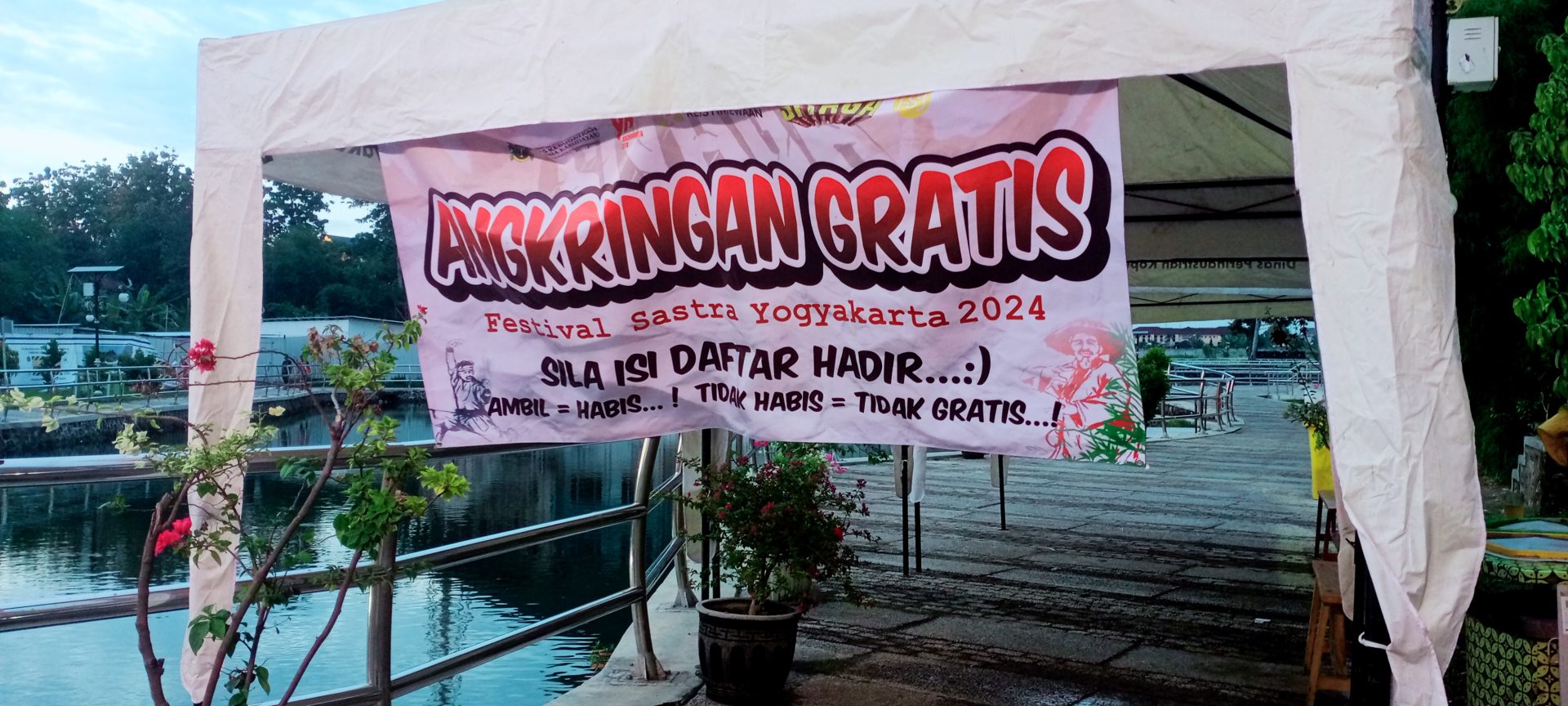 Festival Sastra Yogyakarta (FSY) tahun 2024 yang berlangsung di Taman Budaya Embung Giwangan, kini telah memasuki hari kedua, Jumat (29/11/2024). Setelah hari pembuka kemarin diguyur hujan lebat, kali ini keadaan cuaca cukup mendukung, sehingga seluruh agenda kegiatan bisa terlaksana tanpa hambatan.